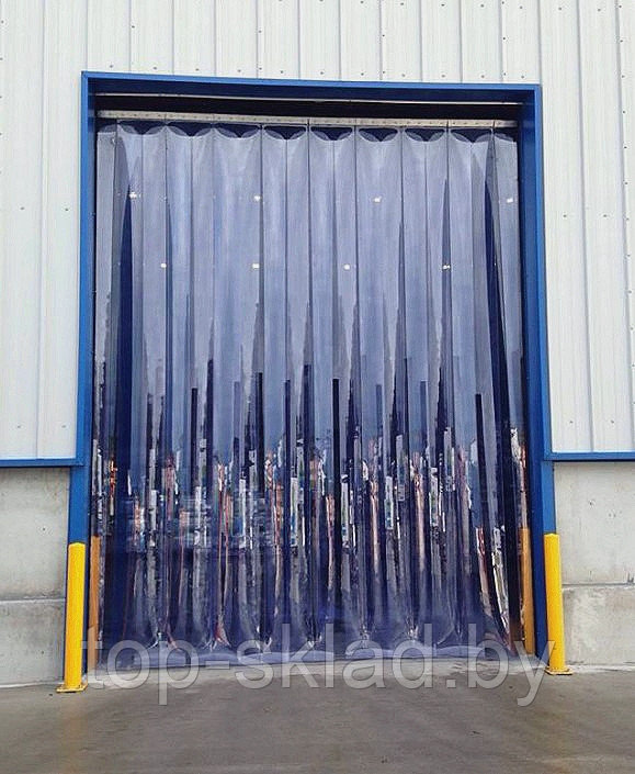 Штора ПВХ прозрачная установленная на двери и ворота, по стоимости не дорогие.